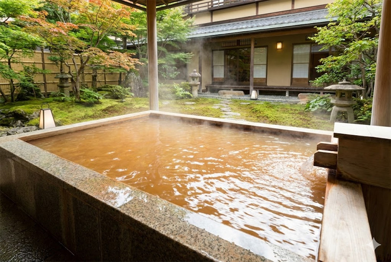 銀泉は露天風呂になっていて、開放感のある雰囲気も◎。有馬らしい情緒を感じながら湯浴みができます。