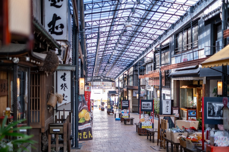 熱海駅を出て平和通り商店街を抜けるだけ。ほぼ平坦ルートで到着でき、帰りもアーケード内を通れるので雨の日でも楽です。最後にわずかな上りはありますが、3軒の中では心理的・体力的負担が最も少ない立地です。