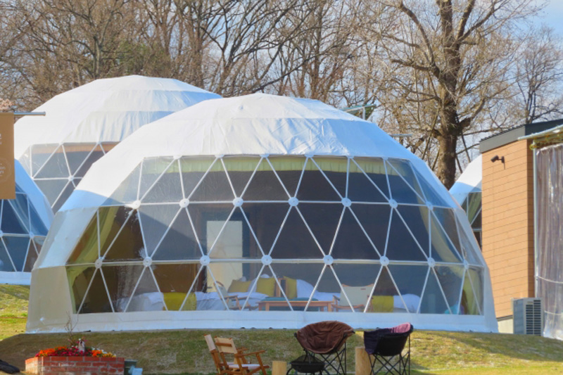 例えば「グランピングリゾートAwaji」や「GLAMP DOME 京都天橋立」がこのタイプです。