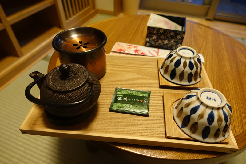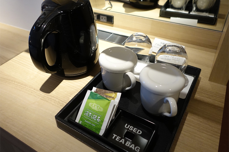 旅先のホテルや旅館で、客室に置かれたお茶セット。