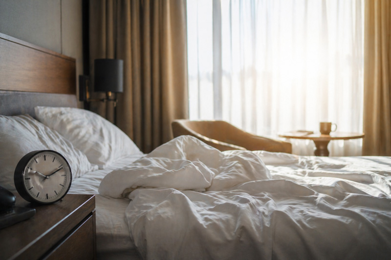 実際に多いのが「アラームに気づかず寝坊してしまい、起きたらチェックアウト時間を過ぎていた…」というケースです。