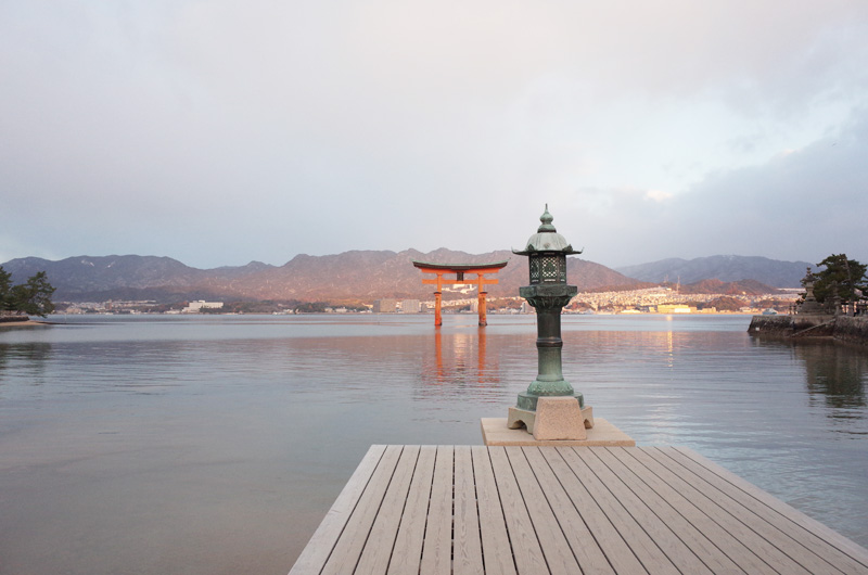 宮島の旅館に宿泊すれば、夕暮れの満潮と翌朝の干潮を両方楽しめます。