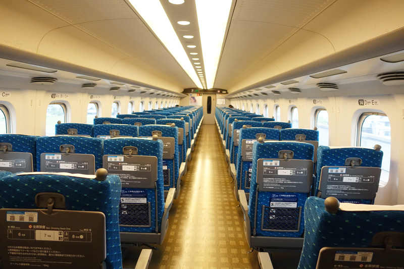 1号車では通路側よりも窓側の席(A席またはE席)が人気。車両の端にある座席は人の通行が少なく、集中して過ごせます。